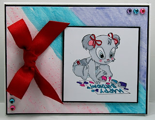 Some inky jewels were added then I decided to add my pop of red with the ribbon bow to match her hair bow.